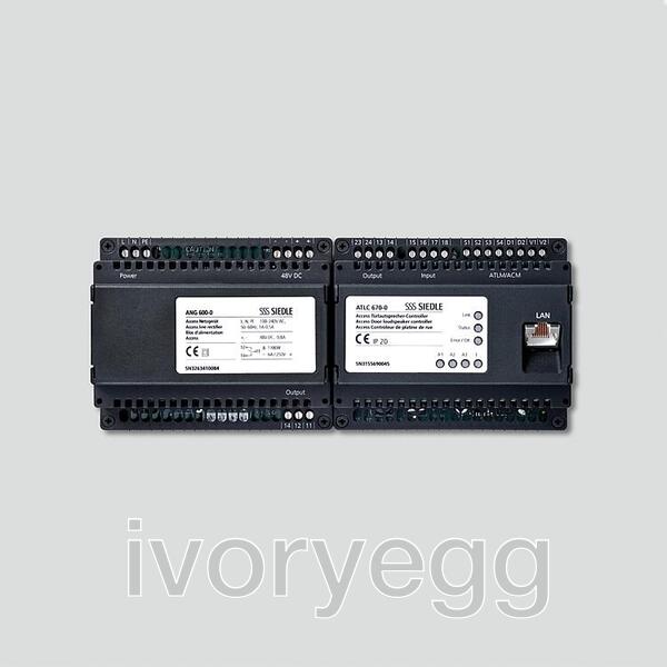 Switching contact for door release and freely programmable switching input.Optional connection facility for a maximum of 3 extension modules ATLCE 670-…